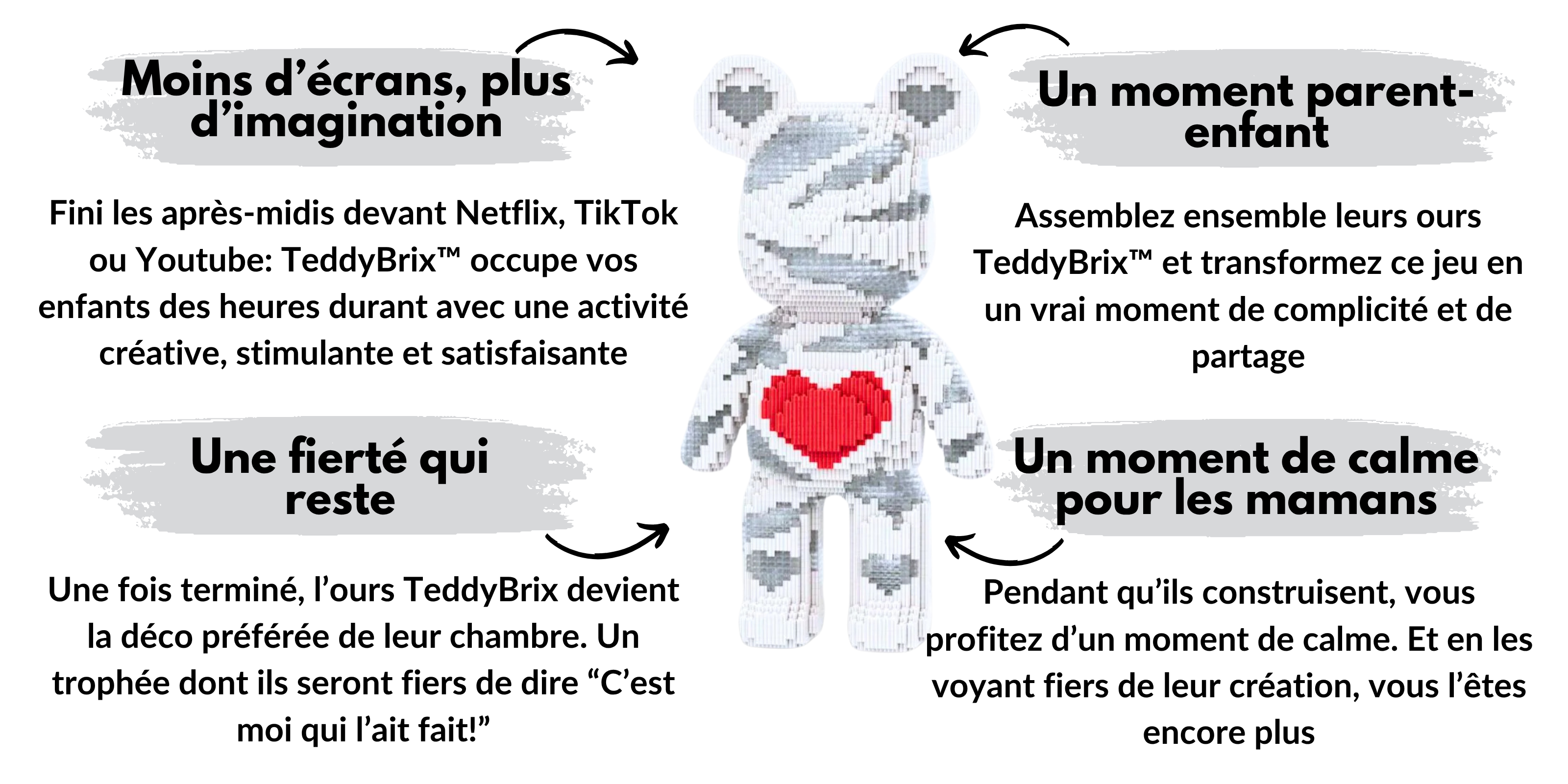 Notre priorité est simple : que chaque maman, chaque enfant, soit pleinement satisfait et fier de son TeddyBrix™.